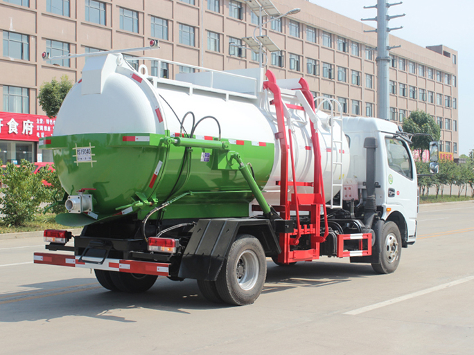 罐體容積7~8m3,罐體厚度4.5mm,配備120L/240L掛桶提升翻轉(zhuǎn)機(jī)構(gòu),液壓系統(tǒng),后蓋液壓鎖緊開啟,罐體可以舉升自卸,尾部帶自流閥;用于運(yùn)輸液態(tài)垃圾,其特點(diǎn)操作簡(jiǎn)單,密封性好,無泄漏,無異味;可選裝固液分離功能,推板擠壓功能,常用于餐館的垃圾轉(zhuǎn)運(yùn)處理。