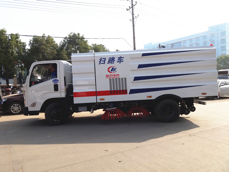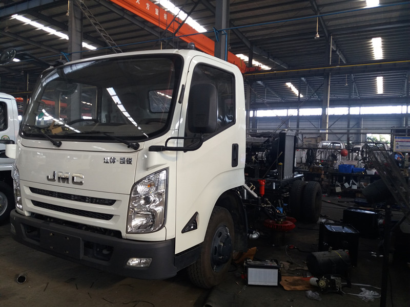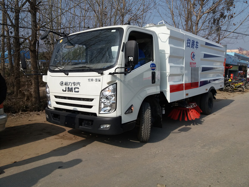 江鈴凱瑞掃路車:江鈴N800 單排可前翻駕駛室,江鈴五十鈴112KW 152馬力發動機,6檔變速箱,前橋3噸,后橋5噸,軸距3815mm軸距