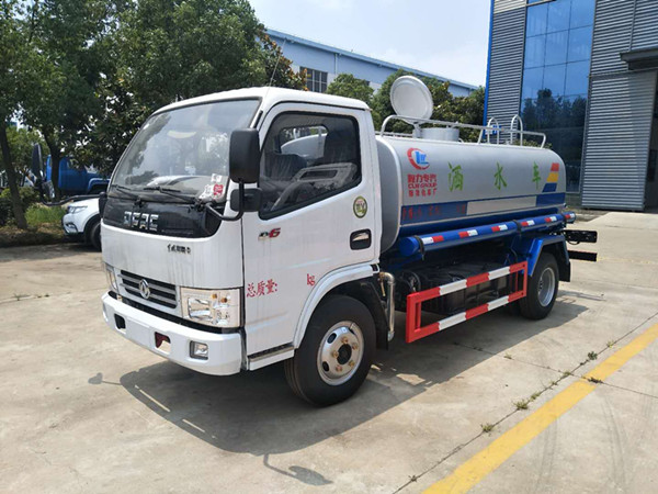 罐體容積為5立方灑水車,新款工藝罐體,厚度為4mm碳鋼Q235材質,罐內隔板具有防波作用,以減輕汽車行駛時罐體液體沖擊,罐體及整車外形尺寸按照公告。帶大功率專用灑水泵,泵可自吸自排,整車前沖、后灑、側噴、帶65消防接口,后平臺帶綠化灑水炮,灑水炮可全方位旋轉,可連續調成直沖狀、大雨、小雨、毛毛雨;前封頭帶水位計,后平臺主管路帶1寸澆花接口,后爬梯。平臺后部帶小安全告知牌:“隨時停車,注意安全”,帶兩根水管及陰陽端。罐體顏色:上白/下藍,銀灰/銀藍,罐體兩側噴“灑水車、綠化灑水車”字樣,貼反光標示。灑水車可加裝前沖后灑氣動閥駕駛室控制、可加裝霧炮機組發電機組噴霧降塵裝置、車頭可加裝推雪雪鏟、雪滾裝置街道、公路除雪等。