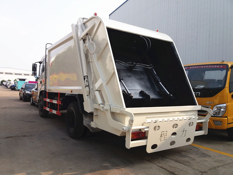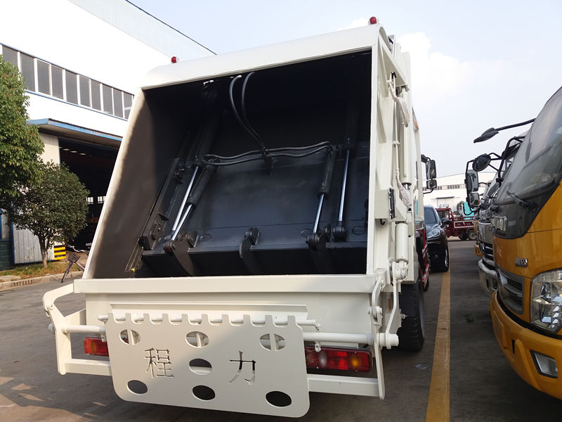 壓縮式垃圾車由密封式垃圾廂、液壓系統(tǒng)、操作系統(tǒng)組成。整車為全密封型,自行壓縮、自行傾倒、壓縮過程中的污水全部進(jìn)入污水廂,較為徹底的解決了