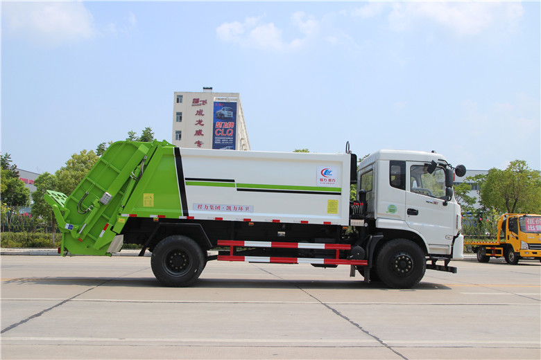 新款平面弧形廂體,廂體材料為武鋼優(yōu)質(zhì)碳鋼,有效壓縮容積12立方,PLC一鍵操作控制,手電一體操作模式,兩側(cè)雙電控,帶駕駛室內(nèi)操作,底板支撐加強(qiáng),雙向壓縮,開放式易清潔污水箱。