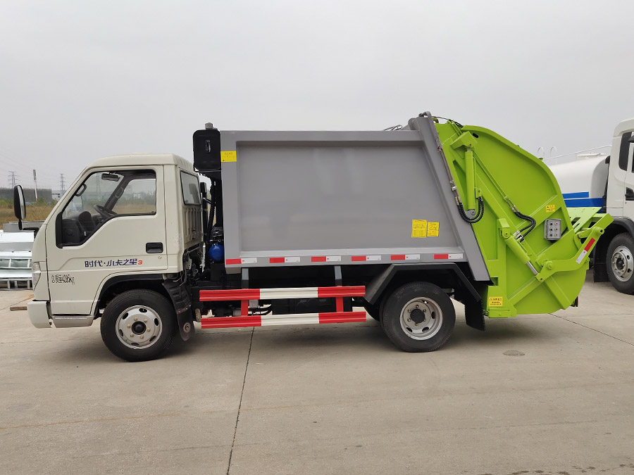 福田小卡之星壓縮垃圾車,壓縮垃圾箱容積4立方米,新款平面弧形廂體,廂體材料為武鋼優質碳鋼,PLC一鍵操作控制,手電一體操作模式,兩側雙電控,帶駕駛室內操作,底板支撐加強,雙向壓縮,開放式易清潔污水箱。壓縮式垃圾車采用機電液一體化技術,借助機、電、液聯合自動控制系統、電腦控制、手動操作系統,通過填裝器和推鏟等專用裝置,實現垃圾倒入、壓碎或壓扁、強力裝填,把垃圾擠入車廂并壓實和推卸,污水全部進入污水收集箱,解決了垃圾運輸過程中的二次污染的問題。壓縮式垃圾車具有自動反復壓縮以及蠕動壓縮功能,壓縮比高、密封性好、裝載量大﹑操作方便、環保性好﹑整車利用功率高等優點。作業自動化,垃圾收集方式簡便、高效。